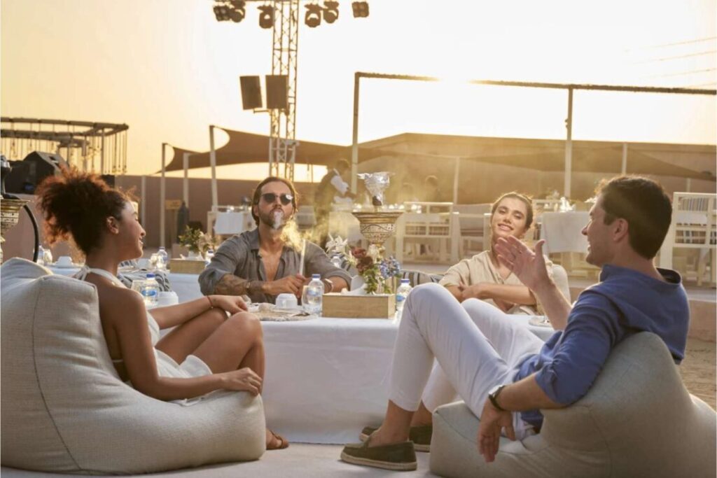 Sunset dune bashing and premium desert camp experience in a shared format — perfect for groups valuing luxury and ambience.